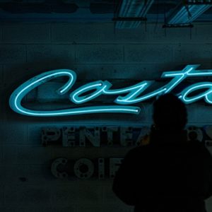 Composée de 70 pièces, elle raconte une partie de l’histoire de la ville avec des tablettes qui décoraient les façades urbaines de Lisbonne. Il s’agit d’enseignes en verre ou en plastique, d’enseignes au néon, de portes, de caissons lumineux et de lettrages métalliques, qui ont été retirés des façades après la fermeture de l’établissement ou lorsqu’ils prennent la décision de les remplacer. La grande majorité de ces objets auraient été détruits, s’ils n’avaient pas été sauvés par ce projet.