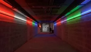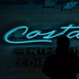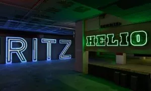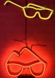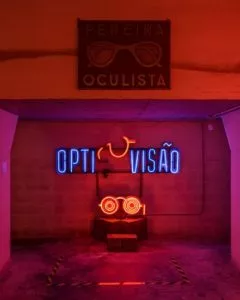 Iluminação de letreiros comerciais do século XX.